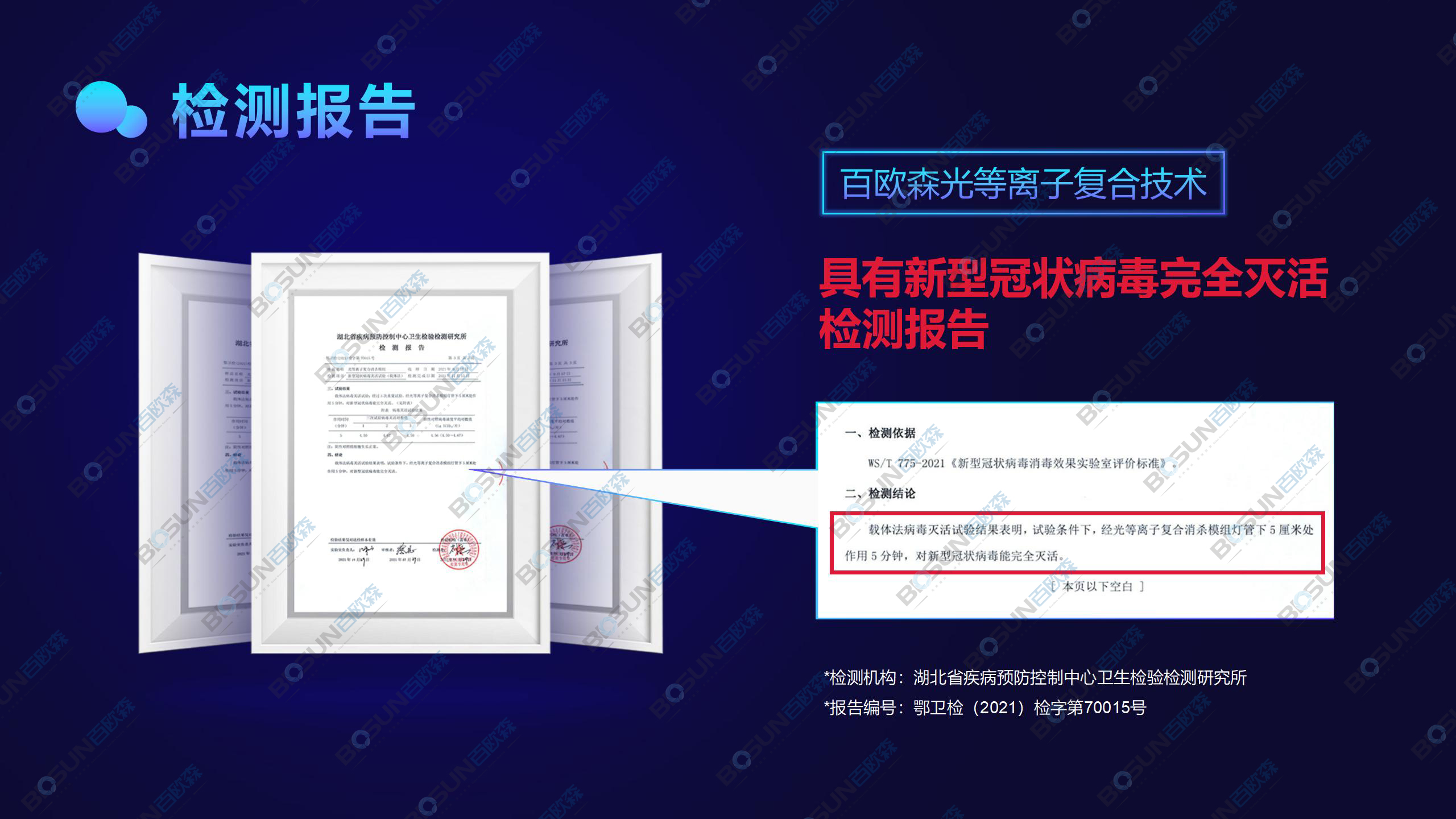 百歐森光等離子技術(shù),在空氣凈化及病毒消殺的細(xì)分領(lǐng)域的研究和應(yīng)用已多年,將細(xì)菌、病毒,可揮發(fā)有機(jī)物TVOC等有害物質(zhì)分解水分子、氧分子等,技術(shù)具有凈化速度快、無殘留、無二次污染,人機(jī)共存等優(yōu)勢特點。以光等離子技術(shù)為主導(dǎo),多項技術(shù)的合理結(jié)合的技術(shù)形式彌補(bǔ)了單項技術(shù)所存在的技術(shù)缺陷,使的凈化消殺技術(shù)達(dá)到了前所未有的高度。其對病毒、細(xì)菌的殺滅率經(jīng)“中國疾病預(yù)防控制中心”檢測,百歐森光等離子凈化技術(shù)對空氣中冠狀病毒、白色葡萄球菌、大腸桿菌等多種病毒和細(xì)菌殺滅率高達(dá)99.9%。